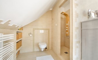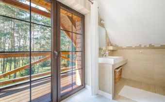 Pokój na dole, często poszukiwane rozwiązanie .Na gabinet, sypialnie rodziców, być może pokój dla dziadków, teściów. Zobaczcie sami zdjęcia sypialni rodziców? Jak w bajce, z własną garderobą i łazienką. Z sypialni wyjście na taras no i ten widok… Dzieci mają swoją łazienkę ???? no i jeszcze jedna łazienka na dole, dla gości .