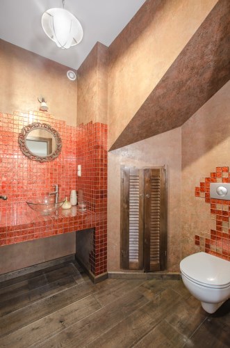 Dookoła sama zabudowa jednorodzinna, bryła niczym z Podhala. Bardzo oryginalnie i z pewnością nietuzinkowo. Każdy element tego domu zarówno wewnątrz, jak i na zewnątrz, został zaplanowany z doskonałą precyzją. Nie znajdziecie tam nic „z przypadku”.