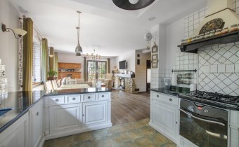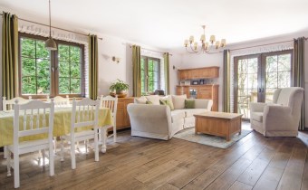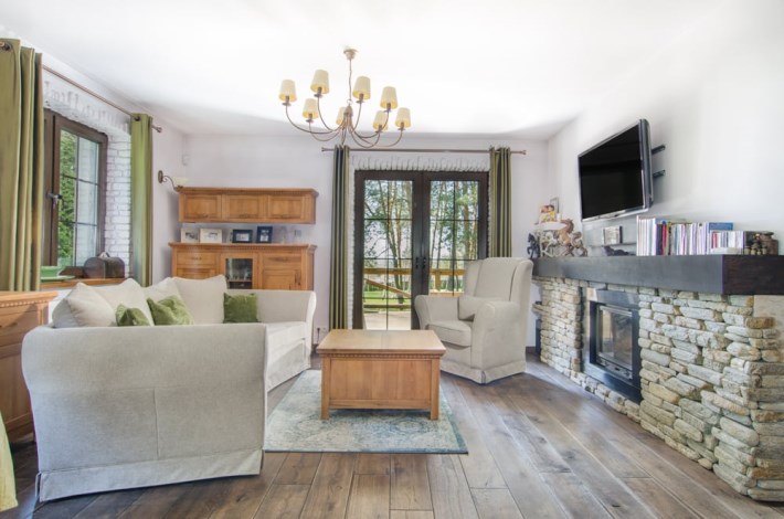 Bardzo klimatyczny, z duszą ,połączenie drewna z kamieniem .Dużo światła, duże okna… Kominek w salonie, spiżarka z drewnianymi przesuwnymi drzwiami, zresztą sam poczujesz na twarzy ten zachód słońca, przygotowując coś w kuchni.