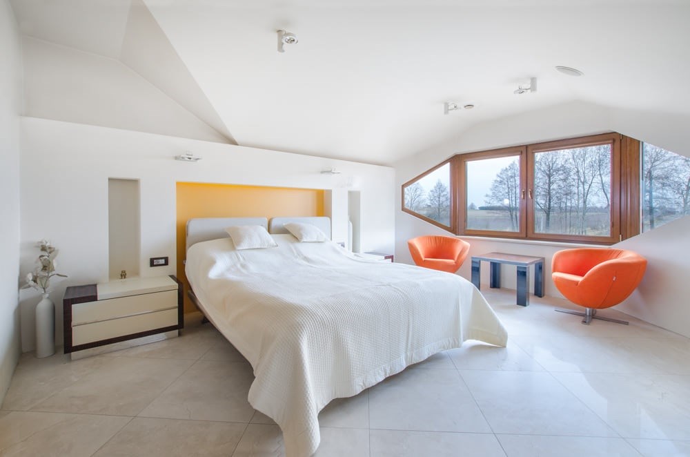 Umieszczona na piętrze i antresoli prywatna część domu to strefa pełna tajemnic. Główna sypialnia jest jak oddzielny apartament. Poza częścią nocną ma kącik czytelniczy i wachlarz dobrze zaplanowanych pomieszczeń. Garderoba na ubrania i kolejna na buty, kryje także drzwi do pomieszczenia-schowka, które pomieści wszystkie rzadko używane przedmioty (od walizek po deskę snowboardową).