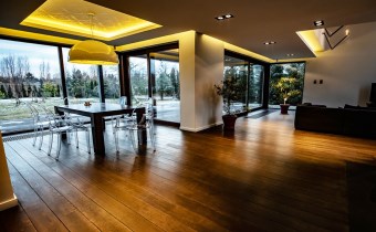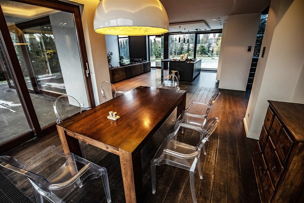 Dom wykończony jest w 95% i kilka elementów trzeba dołożyć i dopracować. Dom jednak daje bardzo wiele możliwości aranżacyjnych poprzez duże otwarte przestrzenie i ogrom okien.