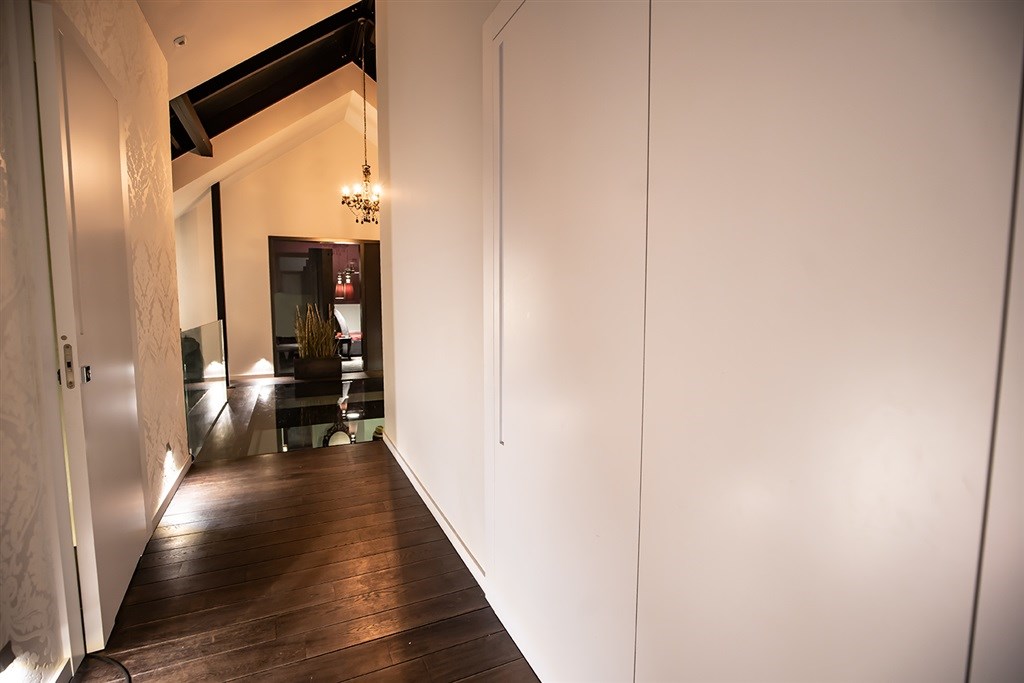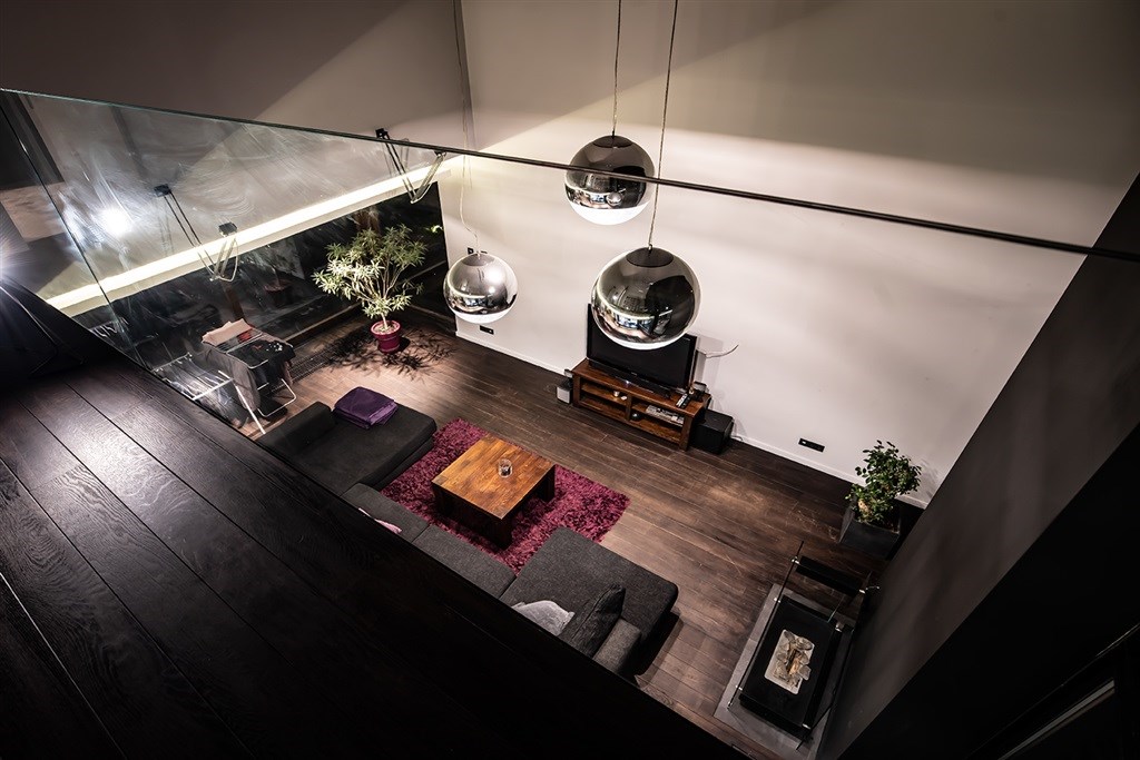 Wnętrza spod ręki architekta Michała Kołackiego. Zresztą w domy jest wiele elementów znanych designer'ów, np. wspaniałe wiszące lampy w salonie wg projektu Toma Dixona, czy niesamowity kinkiet gipsowy Skygarden z wewnętrzną płaskorzeźbą, projektu Marcela Wandersa... Wprawne oko zauważy tam jeszcze kilka innych drobiazgów sygnowanych znanymi nazwiskami :)